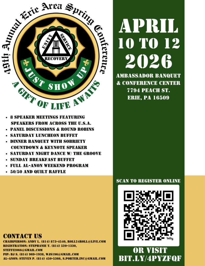 Click the Events tab above for additional AA Erie PA events!