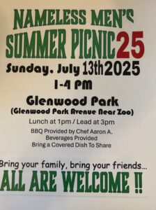 « All Events This event has passed. Nameless Men’s Summer Picnic 25 July 13, 2025 @ 1:00 pm - 4:00 pm « Erie Spring Conference Committee Meeting Erie Spring Conference Committee Summer Picnic » Add to calendar Google Calendar iCalendar Outlook 365 Outlook Live Details Date: July 13, 2025 Time: 1:00 pm - 4:00 pm Venue Glenwood park
